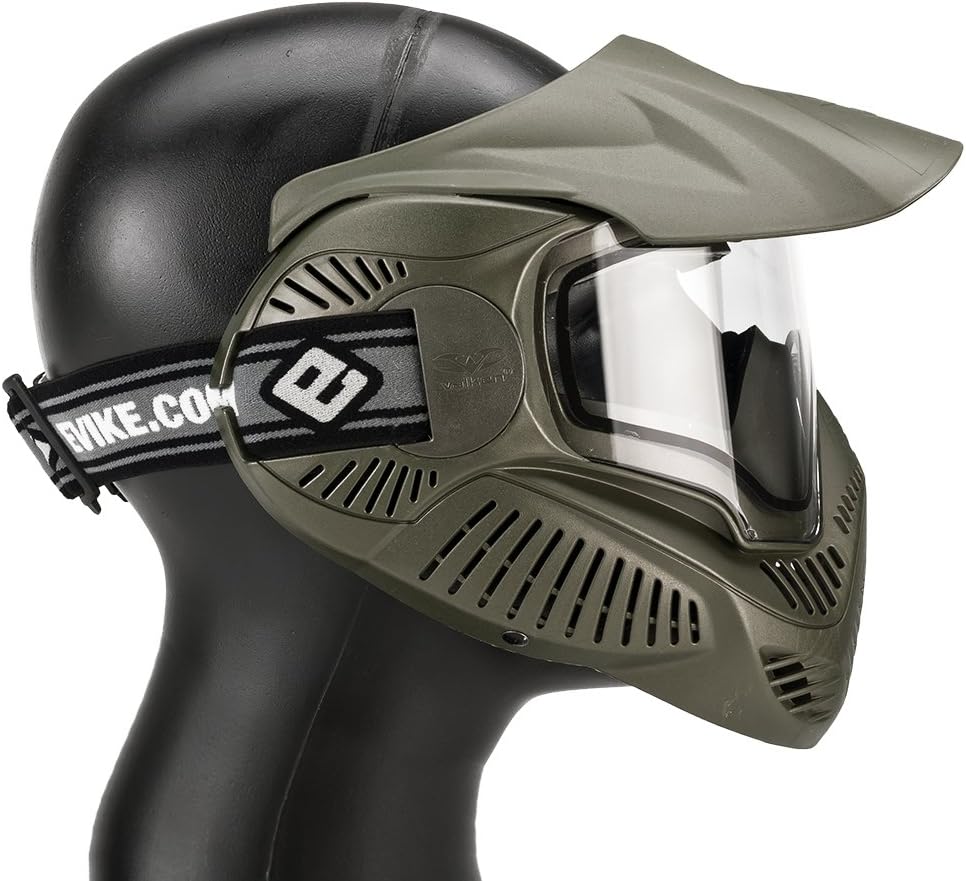 A goggle that has it all--professional features at an entry level price. From its inception, the Annex facepro was intended to take the abuse of any level of play; from the daily rental fleet grind to the occasional weekend battle in the woods. Designed by players, for players--all the features you're looking for at a price that won't break the bank. The Valken MI-7 Full Face Face Pro provides complete protection to the face and ears. The head strap is comfortable and easily adjustable. The lens is a double-pane thermal design that is resistant to fogging. Overall this is a solid choice for full face protection. This special newest edition comes with non-slip evike strap to indicate newest version and batch! Features: + Double-Paned, Thermal Lens system with Hardcoat Lens treatment, fog and scratch resistant polycarbonate construction + Dual-Layer comfort foam--base layer SBR foam for impact absorption, exterior open-cell foam for sweat wicking and comfort + Extreme protection--double layer foam located in both frame and ear + Premium microstitch strapextra durability, elasticity, and eye-catching embroidered logos + Extreme Vision--ultimate visibility, 160 degrees vertical and 260 degrees horizontal vision. See where you're walking! No more sprained ankles! + Full ASTM and CE certification + Robust high-density injected polyethylene + Patented QuickChange lens-release system + Optimized sculpted visor for improved ball deflection and shade + Ultra-durable integrated strap and retention system for quick lens changes + Eye glasses friendly. Size: One Size Fits Most, Adjustable Color: OD Green Material: High Strength Polymer