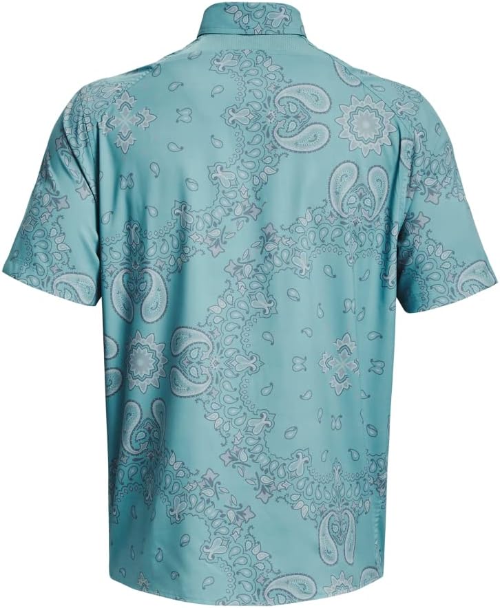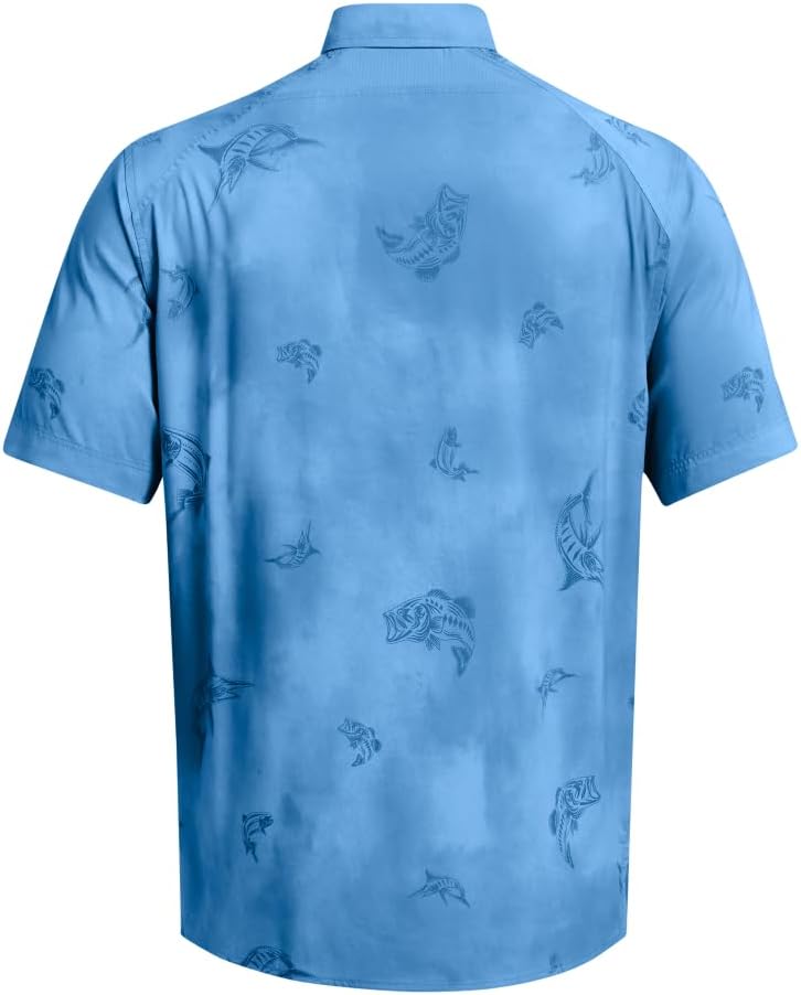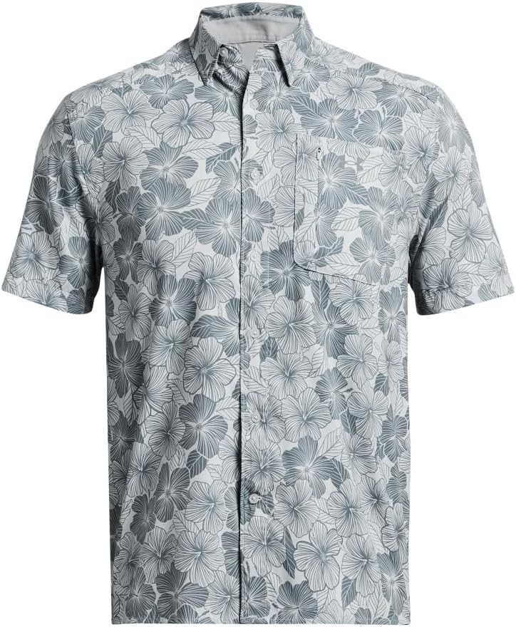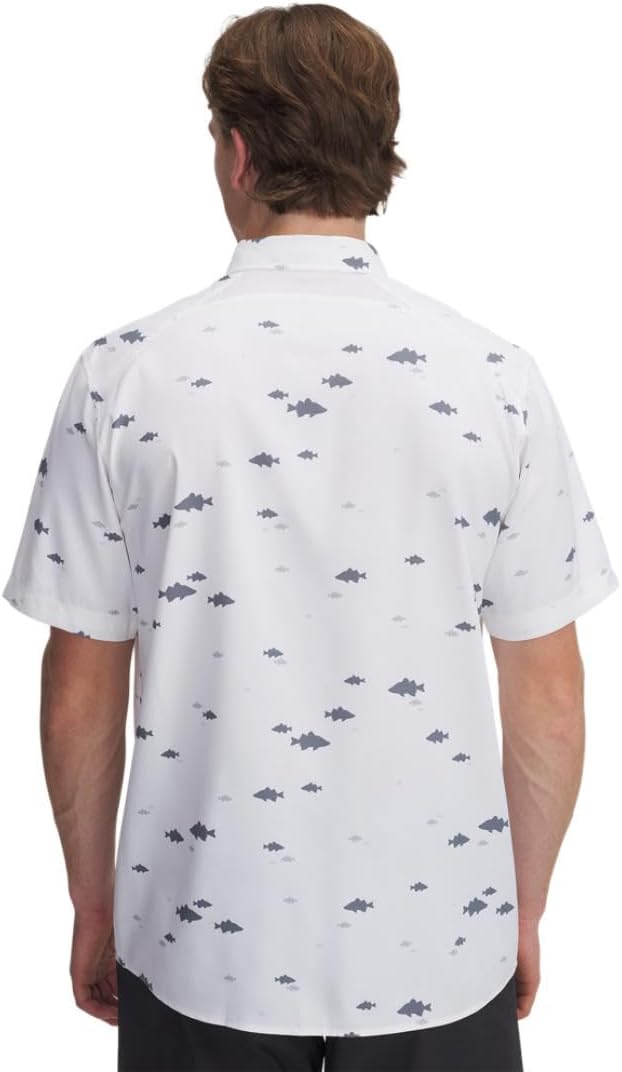 Lightweight stretch-woven fabric is durable & comfortable. Material wicks sweat & dries really fast. Stretch mesh panels for added ventilation. Stain release materials keep dirt from soaking in. Secure chest pockets & hidden snap-down collar.